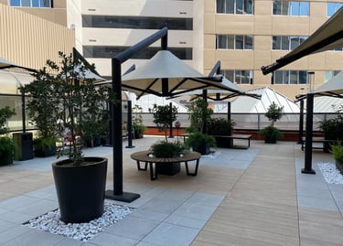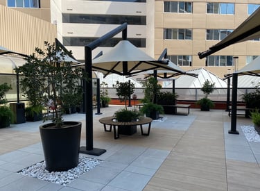 Terraza para área de comida en corporativo de Truper, CDMX.