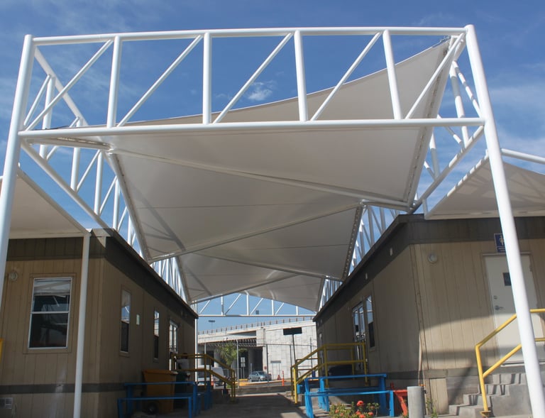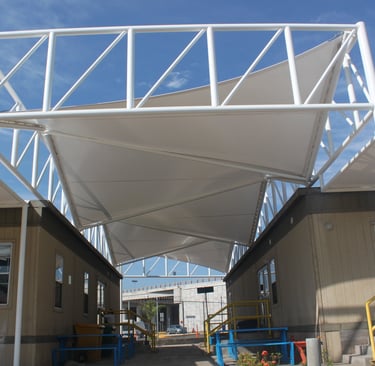 Velaria para cubrir patio central en Centro Comercial Toluca, Estado de México.